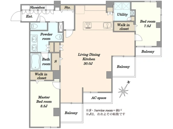 本住戸の最大の特徴は、約30帖の大型LDK。都心では希少なスケールで、開放感のある居住空間が確保されています。
