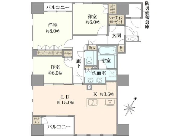 専有面積90.14㎡の3LDK。ファミリー層にも対応できる広さと、使いやすい間取りが魅力です。